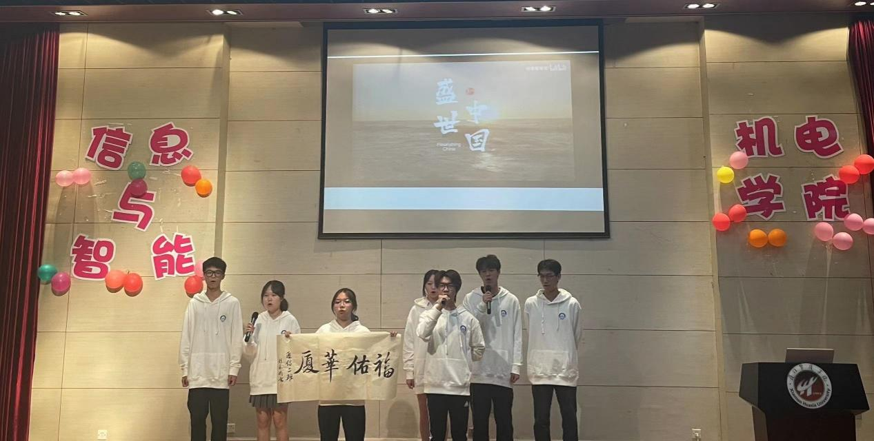 班徽主要以地球作为载体,其中围绕地球的的艺术字是摘取伟德体育的校徽内容,地球上方的信号塔体现通信工程,中间的CE one代表通信1班。班服背面火箭象征1班与其班徽联动,象征华厦学子乘坐华厦公司这艘火箭,不断创新,敢于探索,勇于拼搏,朝着目标迸发,他们用双人舞蹈,模特走秀的幽默生趣的方式为我们展示了他们班服的独特。