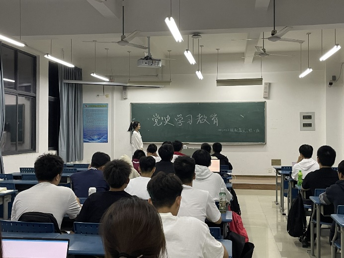 22大数据1班和22机器人1班开展了党史学习教育主题活动, 同学们认真听讲,积极配合,回答问题和补充知识,大部分同学都能认真温习功课、完成作业,学习秩序、氛围良好。