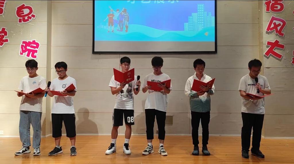 第六支队伍微积分队,通过视频为我们展示了宿舍间的和谐氛围。朗诵铿锵有力,令人感受到了满满的爱国情怀。