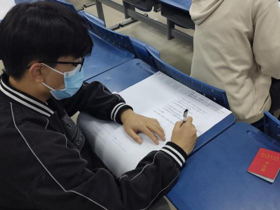 在整个考场布置中,考生们严格按照疫情防控的要求做好防护工作。考前,全体员工上交了通讯设备和复习资料。在考试期间,全体参考人员严守考场纪律,自觉服从监考人员管理。整个考场秉承着公平、公正、公开的原则,全面检验了入党积极分子党课的学习成果。