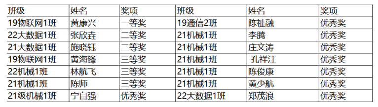 以下是其他获奖选手的名单: