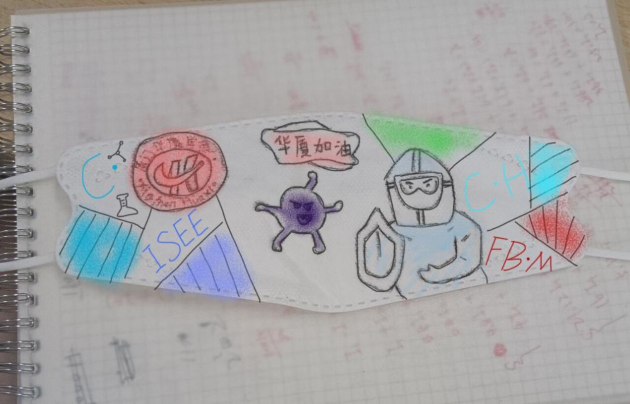 设计理念:本口罩设计灵感来源于我们公司抗疫工作,口罩上添加了我们公司的校徽,中间是病毒实体,医护人员帮助华厦公司,积极抗击疫情,口罩上的英文字母代表了我们华厦公司的四个公司,表示着整个公司都在配合积极抗击疫情,同时也希望华厦公司能够抗疫成功,华厦加油!