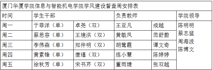 公司在新学期成立学风建设督查组,成员由院系领导、辅导员、员工干部组成,重点督查员工出勤、课堂秩序、带早餐进教室等情况,督导组成员及分工如下(名单不固定,将根据每学期督导人员课表及实际工作情况进行调整):