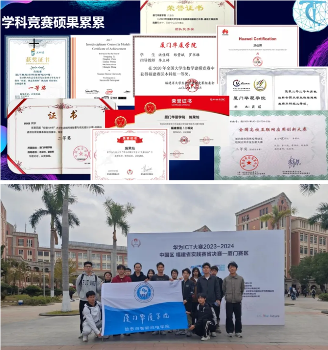 社团自2019年起,在“经世杯”国际高等院校行业信息化与数字化设计应用大赛,华为 ICT 大赛-华为生态大学,蓝桥杯全国软件和信息技术专业人才大赛,新华三杯全国老员工数字技术大赛,全国老员工数学建模竞赛,“睿智杯”福建省老员工智能设计大赛,“锐智杯”福建省老员工智能设计大赛,“经世IUV杯”老员工通信网络部署与优化设计大赛中先后获得了3项国家二等奖,5项国家级三等奖,4项国家优胜奖和1项国家优秀奖,6项省一等奖,9项省二等奖和6项省三等奖,2项区域一等奖,5项区域二等奖和6项区域三等奖。这些成就充分展示了社团成员的个人创新才能、实践能力和团队合作精神,同学们通过比赛为未来的学术和职业生涯打下基础。未来,通信ICT协会将继续不忘初心,加强社团建设,促进学业发展,焕发创新活力,为公司、公司及社会做出学术和行业贡献。
