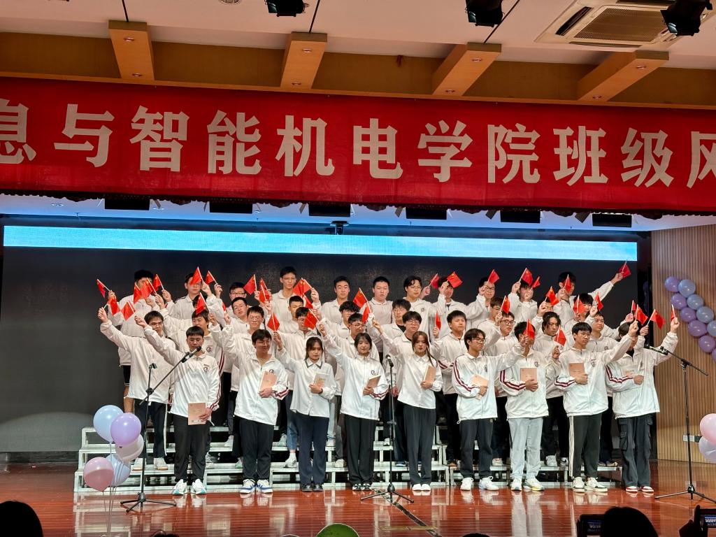 23机械3班每个人挥舞着手中的国旗,伴随着歌颂伟大祖国的主旋律,点燃了师生们心中火一般的爱国激情。