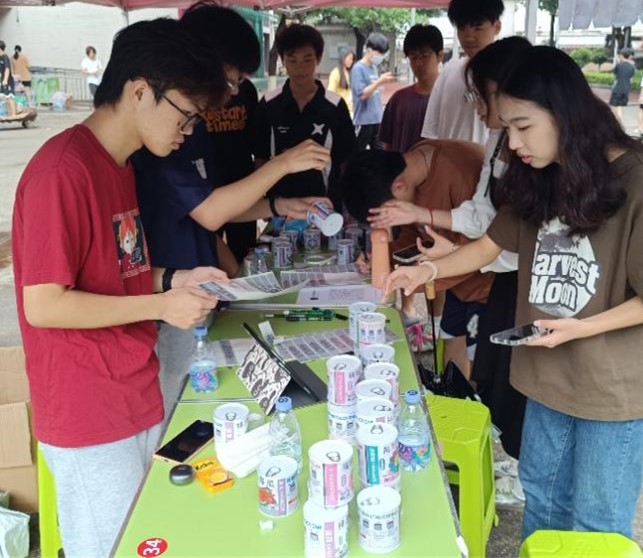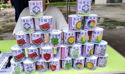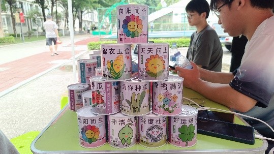 活动现场如火如荼,淅淅沥沥的小雨也阻挡不住同学们的热情。现场工作人员也为同学们传授基础养护知识,分享让不同的植物茁壮成长的小窍门。同学们在活动过程中了解到种植知识,认领自己喜欢的植物罐头。原本乌云密布的天空,仿佛也因为手中代表希望的种子的传递,逐渐散去阴霾。