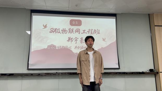 “身后的万家灯火,是我们不灭的能源,更是我们前进的动力。身旁各个民族的兄弟姐妹围成坚固的壁垒,我们携手并肩,共同抵御风雨。矗立在前方的党员们奏起冲锋的号角,带领人民披荆斩棘,坚毅前行。”郑宇豪满怀信心的讲道。