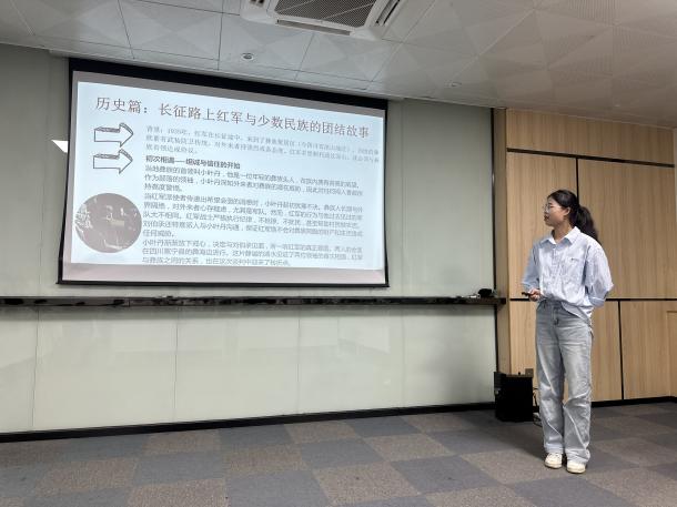 比赛临近尾声,团委书记王亚凡老师对参赛选手进行点评,既肯定了他们各自己的优势,也针对演讲比赛的主题、演讲技巧、情感表达等方面提出了宝贵的建议,不仅让现场选手和观众更深入地了解了参赛者的优点和不足,也为今后的演讲比赛提供了宝贵的借鉴。同时王老师希望所有参赛选手和在场观众积累参赛经验,在日常的学习和工作中相互学习、相互团结,铸牢中华民族共同体意识,不懈努力、共同奋进,让世界看到中国力量。