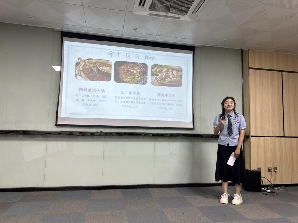 “在我们身边,也有许多民族团结进步的好故事,宛如一朵朵盛开的鲜花,散发着温暖与希望。在一个多民族聚居的社区里,不同民族的邻居们相互帮助、相互尊重。每逢节日,大家都会一起庆祝,分享各自的美食和文化。蒙古族的烤全羊香气四溢,维吾尔族的手抓饭颗粒饱满,朝鲜族的打糕软糯香甜…… ”杨桂彬借助一张张少数民族的特色美食向我们娓娓道来。