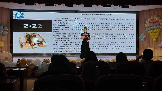 接下来第二个环节是刺激的播音环节,各位选手随机抽取稿件进行口播,内容涵盖了新闻节目、少儿节目、体育节目、娱乐节目等。面对未知的内容台上的各位选手展现着自信大方沉着的青春风采。现场气氛热烈,观众们屏气凝神聆听每一位选手的播音。
