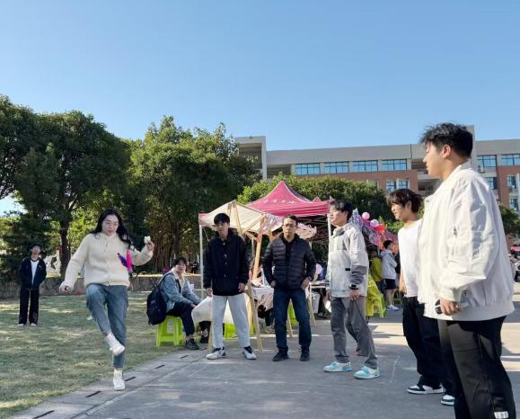 随后是第七套广播体操比赛。赛前,辅导员为员工加油鼓劲。比赛中,同学们精神饱满,动作规范;领操员口令铿锵有力,指挥到位。