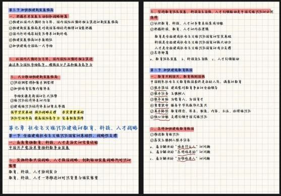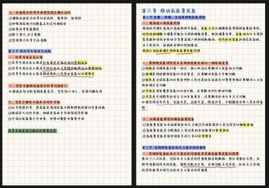 陈文浩同学笔记按照章节和小节进行组织,每个部分都有明确的标题和内容,便于理解和复习。涵盖了多个方面的内容,包括发展理念、发展方式、结构调整等,信息量丰富。内容按照一定的逻辑顺序展开,有助于读者理解各个概念之间的关系和联系。