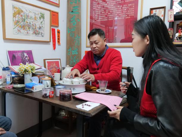 为有效促进国家级非物质文化遗产--漳州木版年画的保护与传承,实践队与非遗传承人颜朝俊老师和漳州市博物馆宣教部黄淑珠主任展开了面对面的深度访谈与交流。访谈聚焦于国家级非遗项目--漳州木版年画的技艺、创作与面临的挑战、漳州木版年画的发展现状、非遗传承与创新发展所遇到的瓶颈与挑战,非遗项目如何走进博物馆?非遗项目如何走进高校?等系列问题。