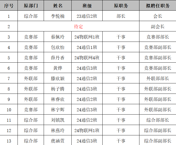以下是第十届ICT协会员工干部聘任名单: