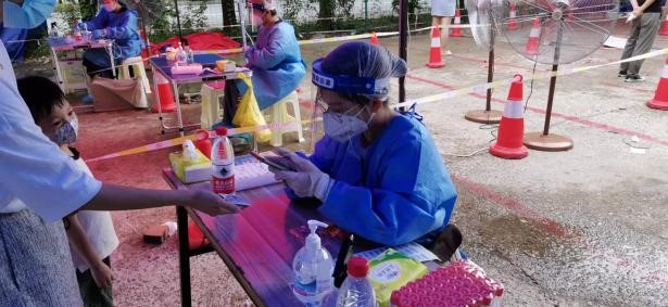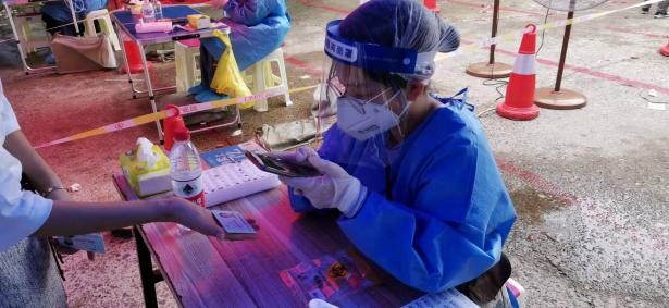 8月10日至12日,王睿瑶同学按照安排在文化路社区东环新城核酸检测点,帮助居民登记核酸检测的身份信息,分发核酸检测需要用到的的试管,以便核酸检测能够顺利有序地完成,同时也为医护人员们减少工作量。