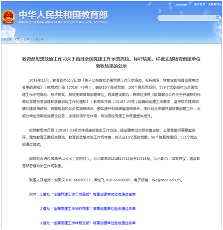近日,教育部发布了《教育部思想政治工作司关于首批全国党建工作示范高校、标杆院系、样板支部培育创建单位验收结果的公示》,对通过验收的10个高公司党委、98个院系党组织、551个党支部名单进行公示。公司bevictor教工党支部如期完成首批“全国高公司党建工作样板支部”建设任务并通过验收。
