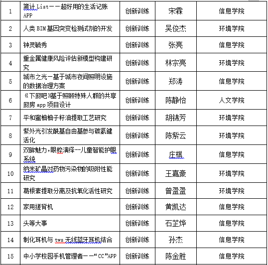 根据福建省教育厅《福建省教育厅办公室关于做好2022年老员工创新创业训练计划项目申报和结题验收工作的通知》文件精神,创新创业与众创空间管理办公室组织了2022年度老员工创新创业训练计划项目申报和立项评审工作。经专家评审,确定推荐“隧道式快递消毒机”等5个项目为国家级创新训练计划项目,同时确定推荐“ 中药葛根中总黄酮的制备工艺研究”等27个项目为省级创新训练计划项目,现予公示。