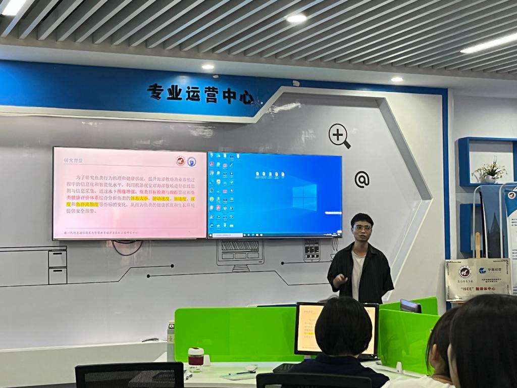 本次会议由青年教师邹立作专题汇报。邹老师以“基于计算机视觉的海洋牧场中鱼类活动状况在线监测与健康评价”为报告主题,主要介绍了计算机视觉技术在实现海洋牧场自动化养殖中的应用与研究,首先从海洋牧场的复杂环境入手以水下图像增强算法对水下图像的色偏、对比度低和亮度低等问题进行处理,其次介绍了鱼类检测和鱼类跟踪的相关算法,对比了传统算法和深度学习算法在水下应用场景的优缺点,之后详细分析了鱼类各项指标变化与鱼类健康状况之间的关系,最后介绍了他在相关实战项目上面已取得的成果和经验,并提出了现阶段研究中所遇到的难点。