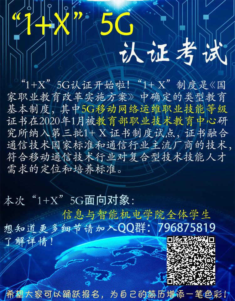 “1+X” 5G移动网络运维(中级)QQ群号:796875819