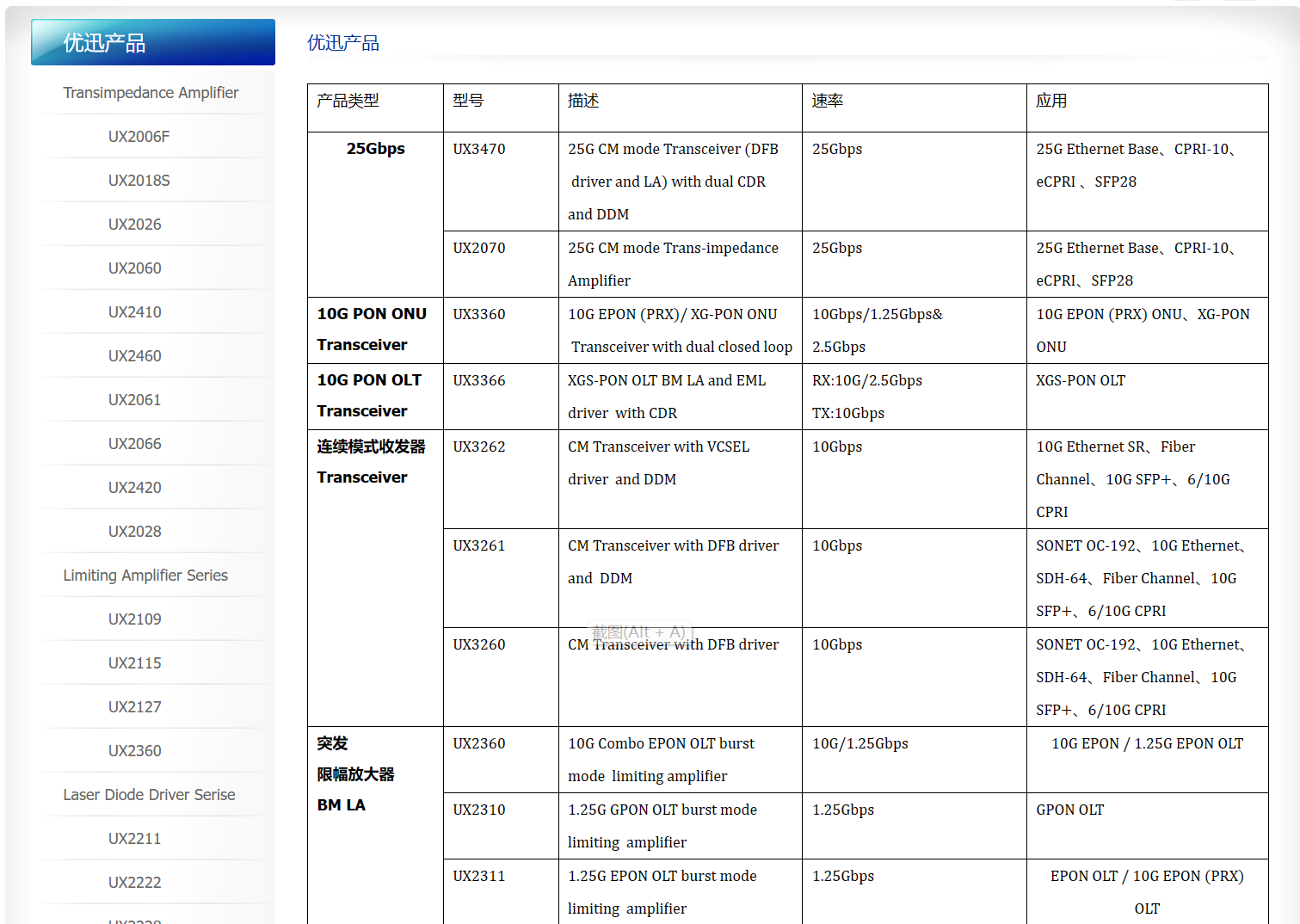 2.拥有完整的PON ONU/OLT系列收发芯片;