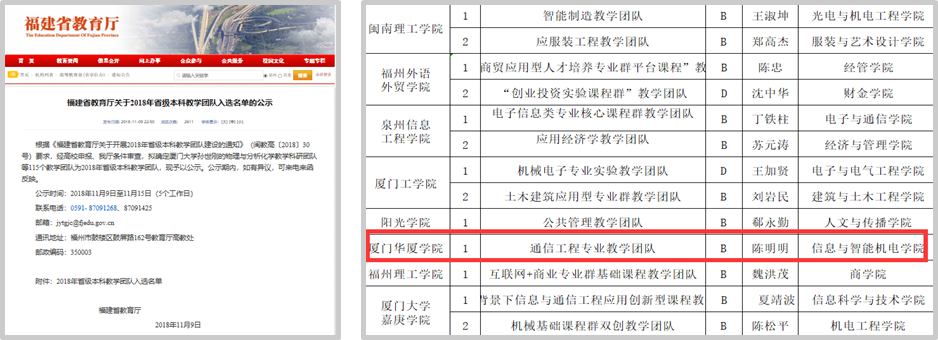 2018年,通信专业校企混编团队团队获福建省级教学团队立项。