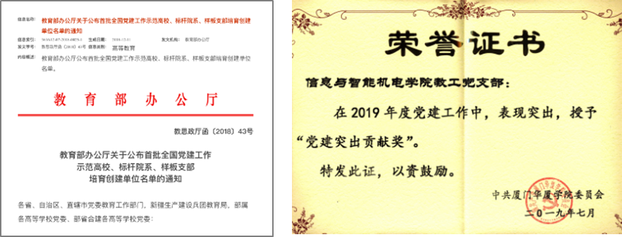 党建与专业发展深度融合,党团建设成果突出,教工党支部获得首批教育部全国样板党支部培育项目,师生在专业领域服务社会成效显著,在此工作中表现突出的2015级通信工程3班获得团中央活力团支部称号。