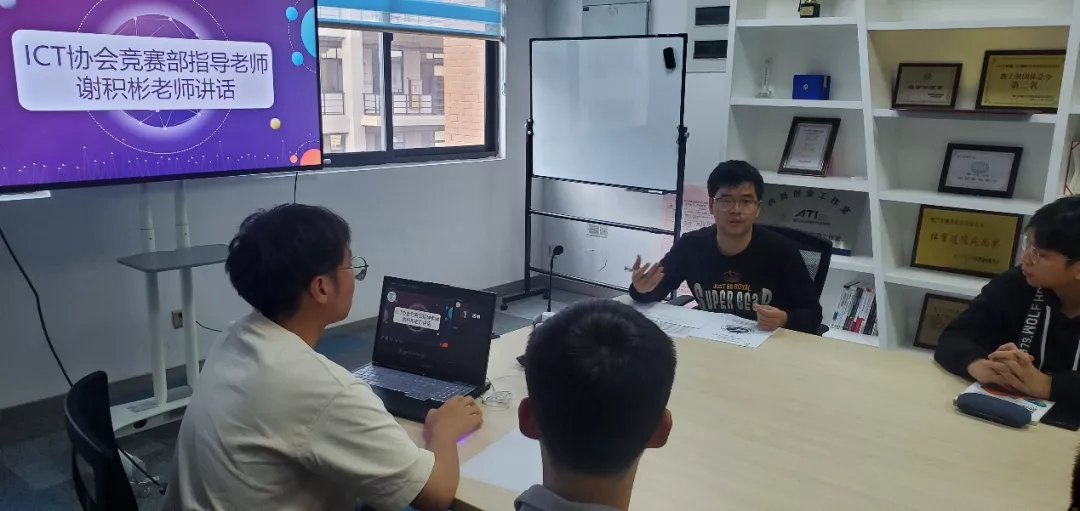 2021年3月25日在大音楼3楼会议室,召开ICT协会竞赛部新学期工作会议。本次会议由副会长余永泷主持召开,参与本次会议的有竞赛部指导老师谢积彬老师、黄丽琼老师,副部长陈俊,以及全体干事。