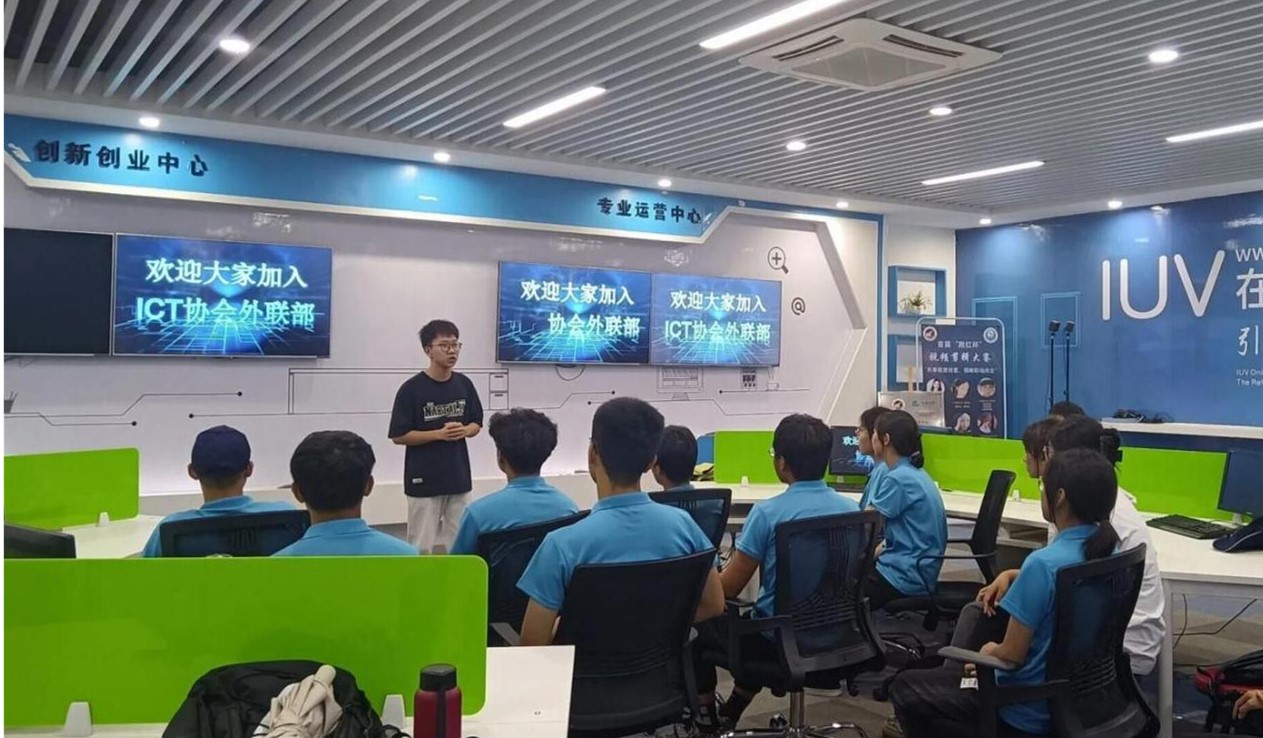 紧接着是由副会长江胜达同学表达对新干事们的殷殷期许,他分享了他在ICT协会中的种种难忘经历以及在ICT协会中得到的经验,他鼓励新干事们在协会中可以多多提问,积极参与比赛,学习相关知识,不断提高自我。