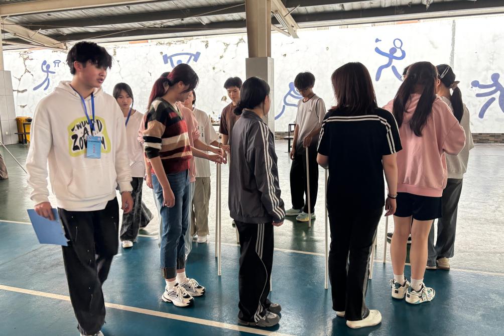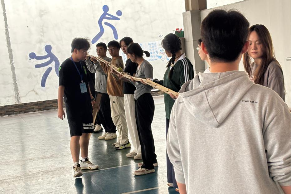 在教练的指导下,各小组依次完成了“颈部接球”项目,挑战队员们通过颈部接力将球传递给下一位成员,强调了团队之间的配合与默契。“接杆挑战”则要求团队成员通过精准的配合,将长杆有效传递,以增强团队的协作能力和反应能力。在“长城运球”项目中,参与者通过巧妙的战术安排相互协作,将球快速且稳妥地送达终点,进一步提高了团队的凝聚力。而在“流行接力”项目中,成员们则需迅速反应,完成各类任务接力,考验了团队的沟通与协调能力。