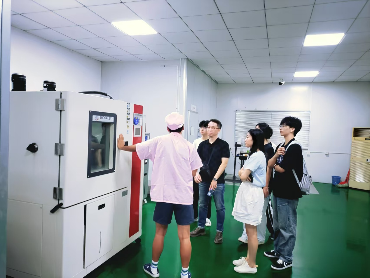 在参观企业的办公区域时,在企实习就业员工代表带领老师同学参观各个部门并详细讲述了仪器作用。金鑫老师与企业技术人员即在企实习就业员工代表进行了深入交流,了解了行业的最新技术和发展趋势。