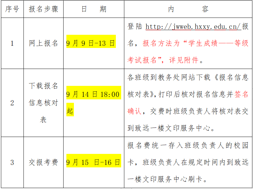 1、报名页面没有显示相片或相片有误,则以班级为单位于2021年9月13日前将电子照片发到 956734917@qq.com,邮件主题必须包含“等级考试报名”。规格:白底彩色证件照,长宽比为240*320,画面光线充足,照片以学号命名。