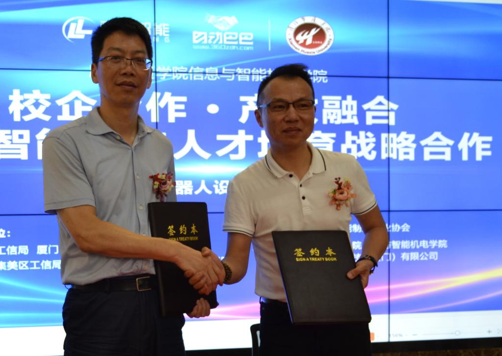 为进一步拓展多层次、多形式、多领域的校企合作,实现校企资源的有机结合和优化配置,共同培养经济社会发展需要的人才。6月21日下午,伟德体育在智能制造创新工场举行“校企合作·产教融合 助力智能制造人才培育战略合作暨工业机器人设备捐赠仪式”。厦门市人力资源和社会保障局蔡坤辉处长、厦门市智能制造产业协会会长廖列程、雷菱智能科技(厦门)有限公司总经理李瑞国、伟德体育陈民伟副董事长及二级公司负责人、社会人士等参加仪式。