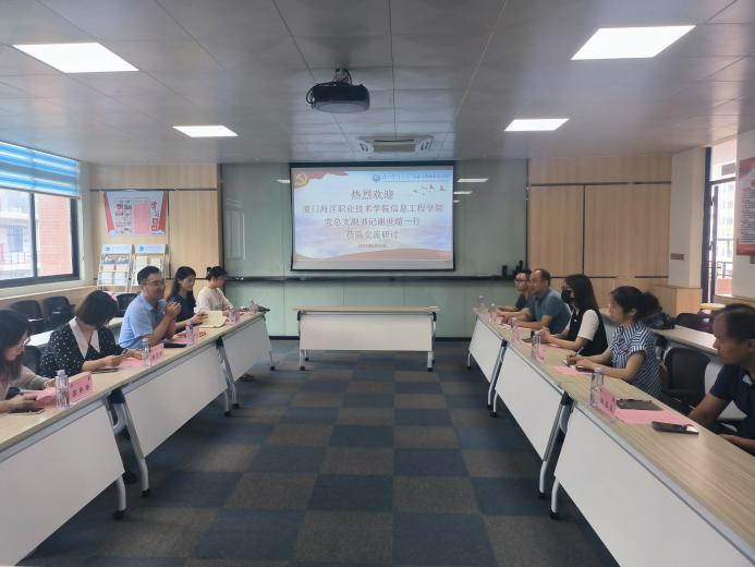交流会上,公司经理、双带头人陈明明对厦门海洋职业技术公司信息工程公司党总支副书记谢世煊一行的到来表示热烈欢迎,并围绕教育部首批全国党建工作样板支部建设、党建与专业建设融合等方面进行交流研讨和经验分享。双方就党建工作与专业建设开展过程中遇到的疑点和困惑问题进行了深入而热烈的探讨,提出意见和建议。
