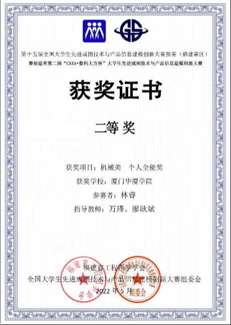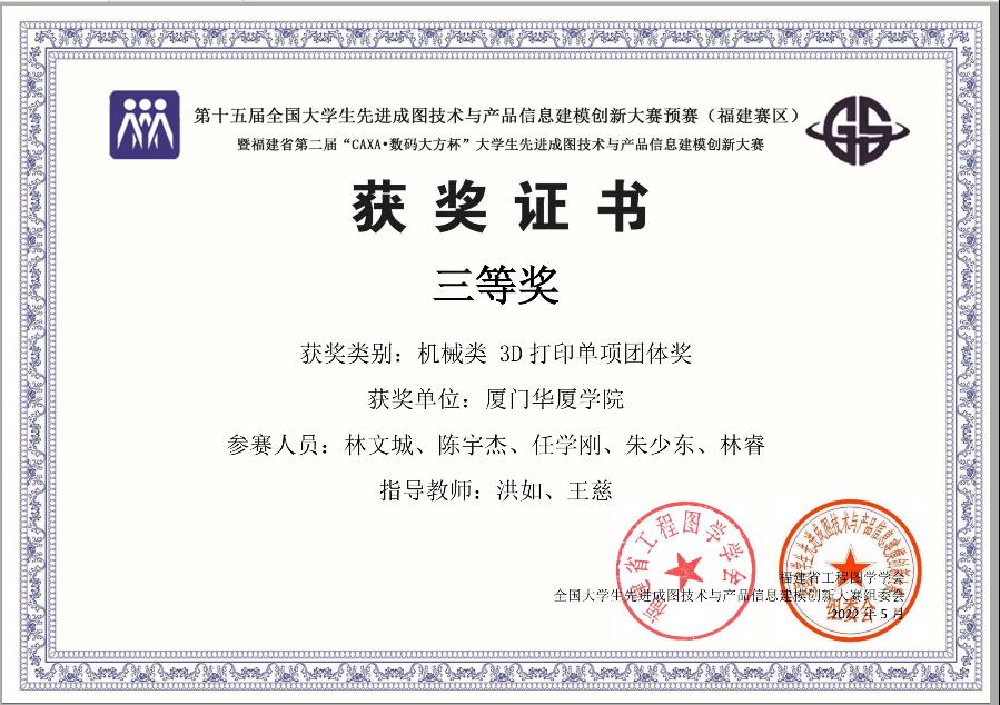 近日,全国老员工先进成图技术与产品信息建模创新大赛组委会、福建省工程图学学会举办的第十五届全国老员工先进成图技术与产品信息建模创新大赛预赛(福建赛区)暨“福建省第二届‘CAXA数码大方杯’老员工先进成图技术与产品信息建模创新大赛”隆重举行,公司学子获机械类3D打印单项三等奖、团体类二等奖、个人全能奖二等奖二项。