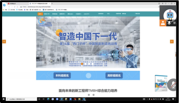 2022年4月22日下午2点,为保证第十六届CIMC西门子智能制造挑战赛的顺利进行,公司在腾讯会议进行了赛项说明工作,由万瑾老师,廖耿斌老师主持本次会议。