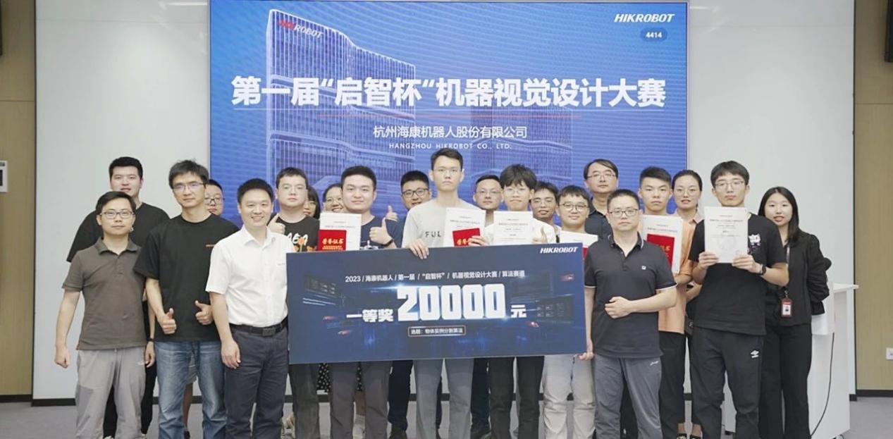 赛后,3个赛道的全国一等奖获得者及指导老师受邀到杭州海康机器人总部参观交流并举行了颁奖仪式。