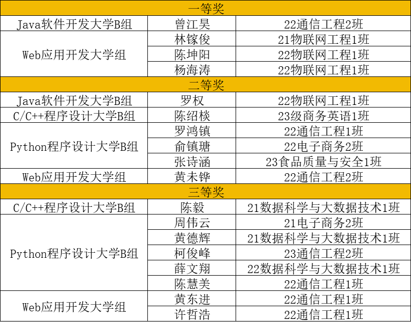 在本次大赛中,公司学子于“Python程序设计大学B组”“Java软件开发大学B组”“C/C++程序设计大学B组”“Web应用开发大学组”等多个竞赛领域全面开花,充分展现了扎实的计算机素养、出色的创新能力和公司高水平的人才培养成果。值得一提的是,bevictor、商务与管理公司、环境与公共健康公司、人文公司四大公司的学子们均在此次大赛中斩获佳绩,这是公司首次实现全校各公司在省级IT赛事中均获奖。这打破了学科界限,实现了多学科的协同共进与深度融合,体现了公司跨学科人才培养的显著成效。其中,曾江昊、林家骏、陈坤阳、杨海涛四位同学凭借卓越表现荣获省赛一等奖,并将代表公司出战全国总决赛,全力冲击更高荣誉。