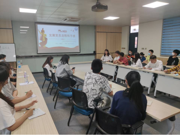 随后黄敏凤老师向新生详细地介绍了发展党员的流程和手续。发展党员需要经过入党推优,入党积极分子的确定和培养考察,发展对象的确定和考察,预备党员的接收,预备党员的教育、考察和转正四个阶段,在最后敏凤老师提醒在座同学要清楚知道自己的入党动机,并鼓励新生积极提交入党申请书,积极向党组织靠拢,时刻严于律己,提升了新生对党员身份的认同感与对组织的归属感。
