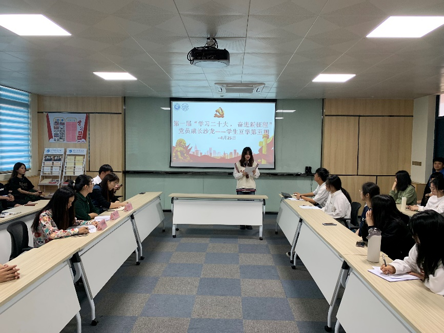 成长沙龙采用“分享+理论学习”的研讨交流模式,每位党员作为发言人,以分享红色故事,个人成长经历,学习二十大为主要内容,结合自身实际悟思想、谈感受。分享完毕后,在场入党积极分子可提问题、谈想法,共同讨论。