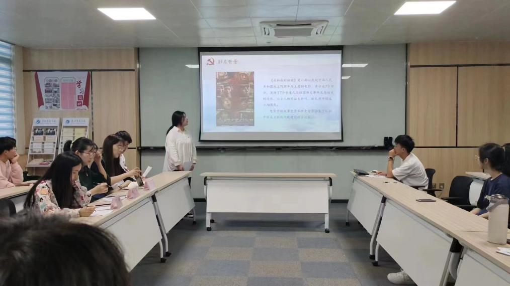 第二位同学何晶则选取了电影《我和我的祖国》中《相遇》和《夺冠》这两个情节进行分享,向我们讲述了影片中他们所承载的奉献、牺牲、拼搏、捍卫、坚守的时代精神,穿越时空,历久弥新,凝聚成为“我和我的祖国,一刻也不能分隔”的坚定信念,生动地表达着“历史是人民写就的”价值主题。最后联系自身经历,确立对自己未来发展方向的选择。