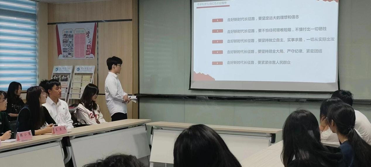 最后沈佳铭同学分享的主题则是红色长征精神,他联系自己当员工干部以及参与志愿服务的经历,谈到了对于新时代长征路的见解,走好新时代长征路,我们要坚持独立自主、实事求是,一切从实际出发。作为青年人,我们要时刻保持独立自主的学习精神,认真完成专业技能的学习,提高自身能力和水平,积极投身建设中国特色社会主义现代化强国。