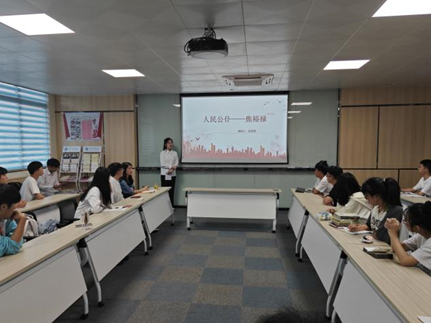 此次活动由预备党员石芷烨分享关于“人民公仆”焦裕禄的故事,首先主讲人介绍了焦裕禄的生平事迹,他是一位忠诚的共产党员,为人民利益不计个人得失,为革命事业献身终身。随后,主讲人详细讲述了焦裕禄在工作中的先进事迹,他在贫困山区工作期间,深入群众,倾听群众呼声,帮助群众解决实际问题,为群众谋福利,赢得了人民群众的信任和爱戴。最后她希望在场的党员同志和入党积极分子一同学习焦裕禄同志的“亲民爱民、艰苦奋斗、科学求实、迎难而上、无私奉献”的精神,为谱写新时代绚丽华章而不懈奋斗。