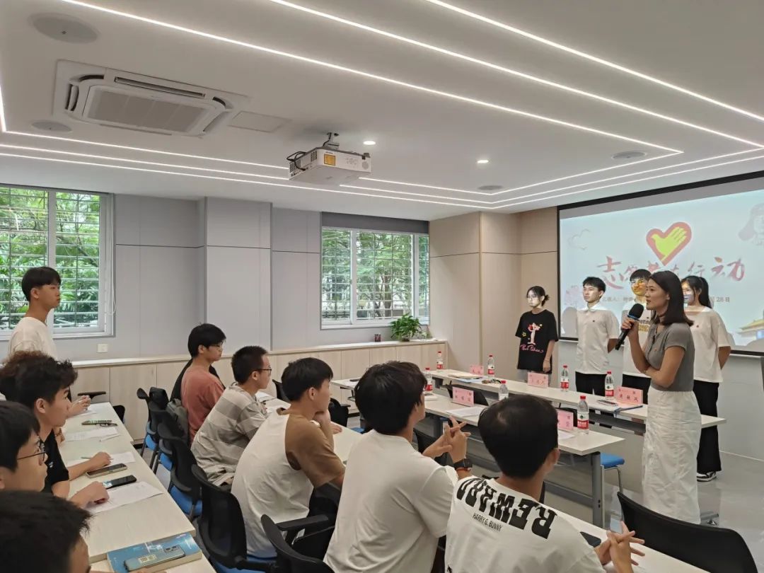 在互动答疑环节,钟晓莹、林镓俊、林志添同学,公司青年志愿者协会负责人王诗雨同学与23级新生同学们展开积极交流,详细介绍了校内开展的系列志愿服务活动、做志愿服务时的注意事项等。黄敏凤、王亚凡、成越等老师从自身的工作经验出发,细致耐心地解答同学们提出的关于志愿活动的相关问题,并勉励全体新生在未来的老员工活里,在志愿服务中书写青春价值,在助人奉献中体会青年担当,在社会实践中展现青春风采,在劳动教育中彰显青年力量。