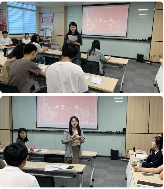 活动最后,黄敏凤老师对选手们的诵读做出了点评,肯定了每一位选手的表现,同时希望各位新时代青年要深刻领悟党的百年光辉历程,增强爱党爱国的思想觉悟,坚定不移听党话、跟党走。练小慧老师指出一代又一代的共产党人通过不断拼搏,艰苦奋斗,孕育形成了宝贵的红色精神,是我们青年党员宝贵的精神财富,希望每一位选手能够发扬好中华优秀经典文化。董雨婕老师希望选手们今后能够以更加饱满的热情和昂扬向上的精神投入到学习工作中,脚踏实地,争做时代新人。
