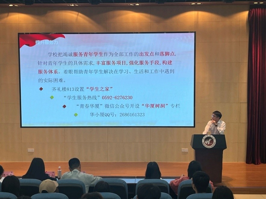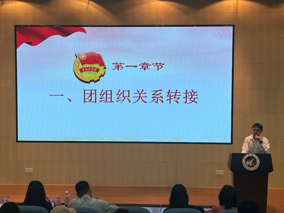 此次会议中,赖金城同学主要讲解了六大方面的问题。首先是团组织关系的转接,他向大家介绍了团员团组织关系转接的要求和流程,将省外和省内同学的不同方法进行一一说明。