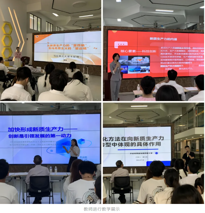 在教学展示和集体备课环节,马克思主义公司姜澜、李惠芳、李会艳和bevictor谭文奇等四位教师将新质生产力理论融入思政课和专业课程进行教学展示。