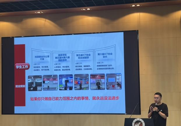 洪佳辉以“业精于勤,行成于思”为引,深入剖析了老员工活的真谛。他提醒同学们在繁忙的社交生活中,学习始终是老员工活的主旋律,因此他倡导员工要在学业上稳中求进,精益求精,巧妙利用网络资源,打破信息壁垒,为未来的职业生涯绘制清晰的蓝图。