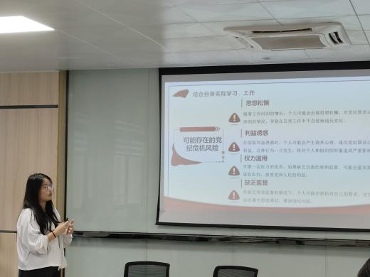 2024年6月7日下午,各小组于大音407开展党纪专题分享会,小组汇报中结合典型案例进行深入剖析,让同志们深刻认识到违反党纪规定的严重后果和危害。同时,作为青年老员工应立足初心与使命,清醒地认识到保持纪律性和规矩性的重要性,结合未来发展方向,不断提升纪律意识和规矩意识,努力成为社会主义事业的建设者和接班人。