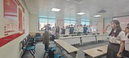 最后,董雨婕老师和练小慧老师带领全体毕业生党员重温入党誓词。在那庄严的誓词声中,每一位党员心中都充满了对党的忠诚和对人民的热爱,也满载着对党的深深敬仰和对未来的坚定信念。