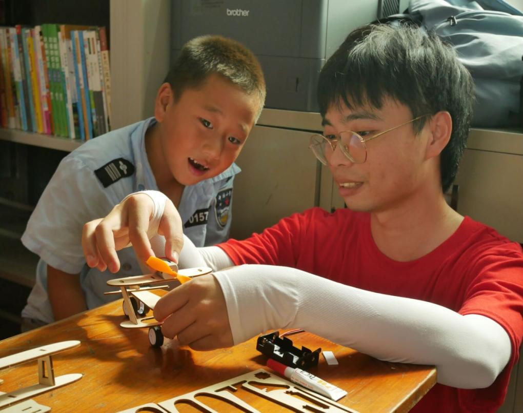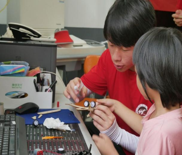活动焦点之一是科学实验课的开展,旨在激发小朋友对科学的热爱和好奇心,培养他们的科学素养与探究精神,以及提升动手实践能力和创新思维。活动伊始,伟德体育的邹立老师首先向小朋友们展示智能小车的工作原理,并进行实际操作,科技的力量即可吸引孩子们浓厚的兴趣。在邹立老师的指导下,小朋友们亲自操作智能小车,随后在实践队志愿者的带领下,他们分组合作,动手拼装智能小飞机。通过这些实践活动,小朋友们不仅学习了智能机械的基本工作原理,还锻炼了动手能力和团队合作能力,拼装成功后的喜悦洋溢在他们的脸上。